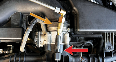 Ensure the MOC #73441 Turbo Mister adapter is securely attached to the service hose. Connect the Turbo Mister adapter to the intake manifold using a hose extension included with the machine.